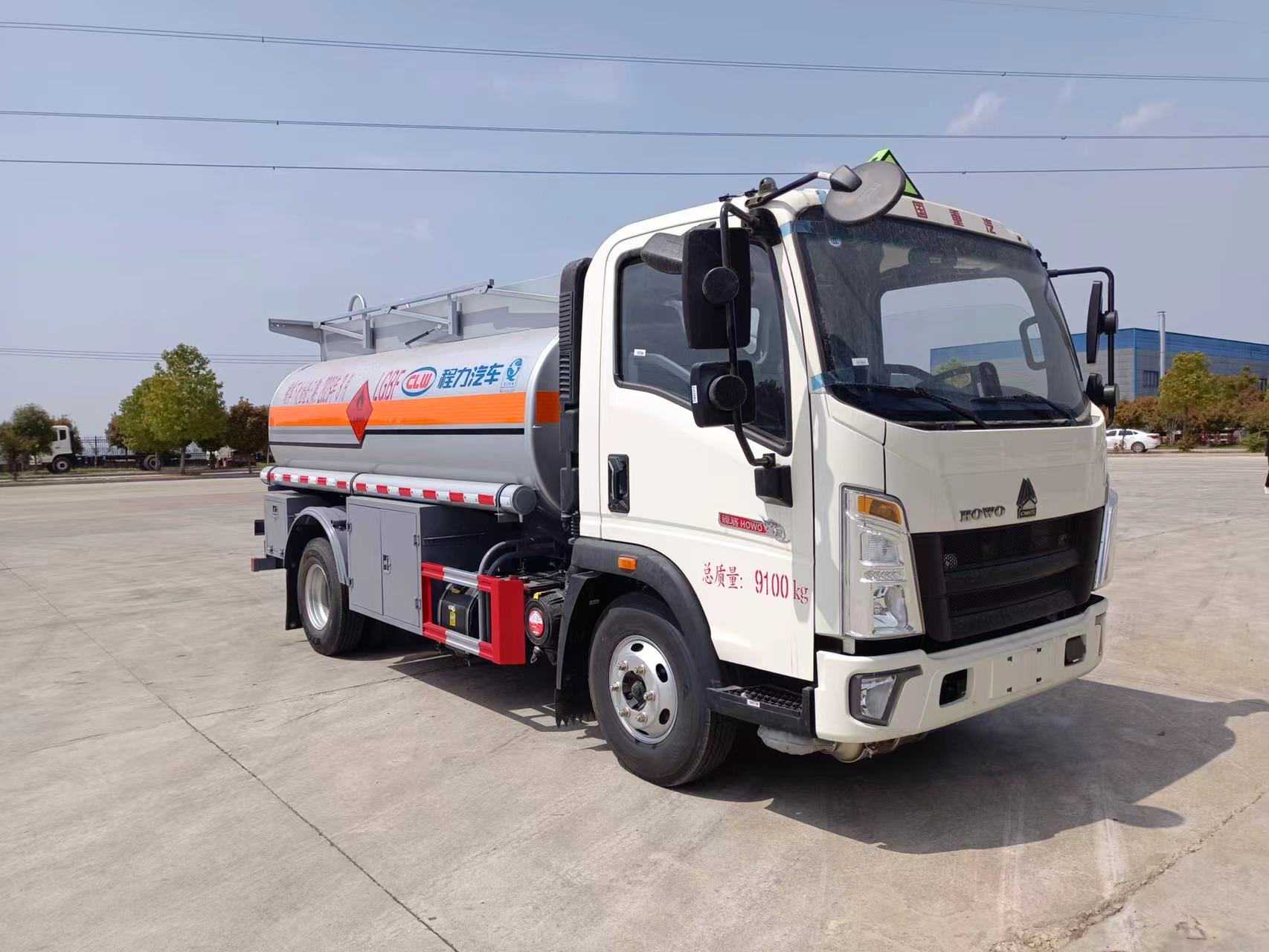 | Exterior Configuration | The Howo 5-ton fuel truck has a gross vehicle weight of 9.1 tons and a tank volume of 6.2 cubic meters, which is within the legal limit for 5 tons of fuel. It features a Weichai 4-valve 130hp WP2.3NQ130E61 engine with strong power; a Wanliyang 6-speed WLY6G40 transmission; a 2.0T disc axle at the front and a 3.5T drum axle at the rear (4.875mm); 7.50R16 steel radial tires; air conditioning; power windows and doors with remote control; front disc brakes; front-mounted exhaust pipe; speed limit 80km/h; LDWS+FCWS; 1880mm wide single-row body with thick leather seats; color screen instrument panel; electric horn; multi-function steering wheel with cruise control; vehicle model 17D; 11/9+7H leaf springs; 120-liter aluminum alloy fuel tank; fully compliant with regulations, fuel standards, and environmental regulations… | ||